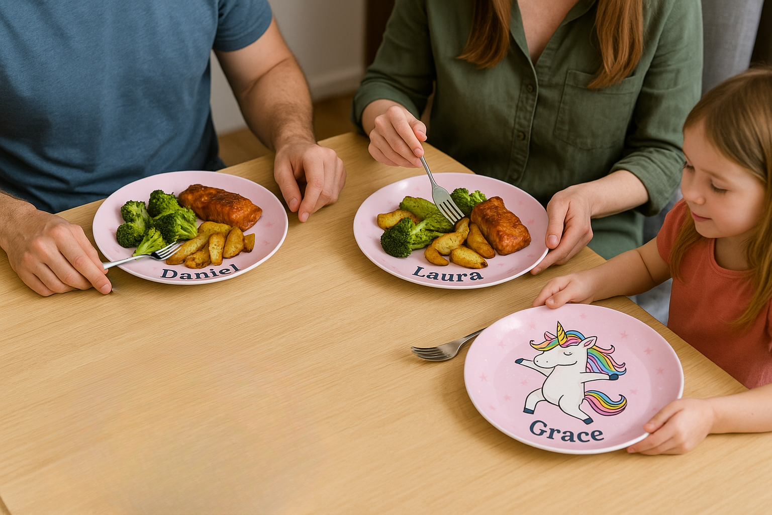 WhimsyWares was created from a simple idea: everyday items should make us smile. We design custom plates and tableware that feel special — because mealtime isn’t just about food, it’s about connection, joy, imagination, and moments worth remembering.
