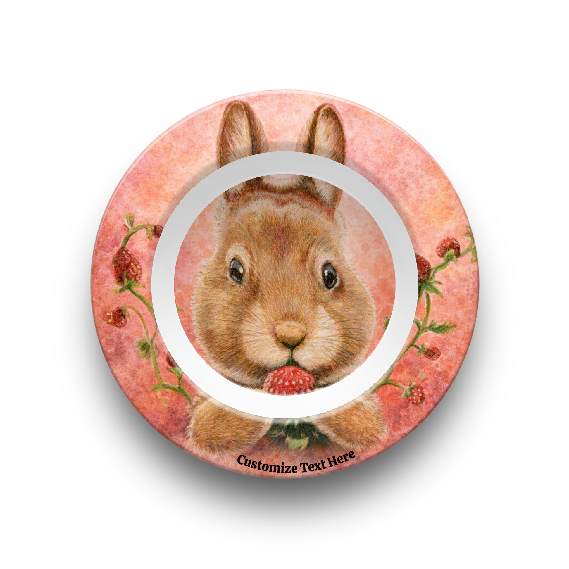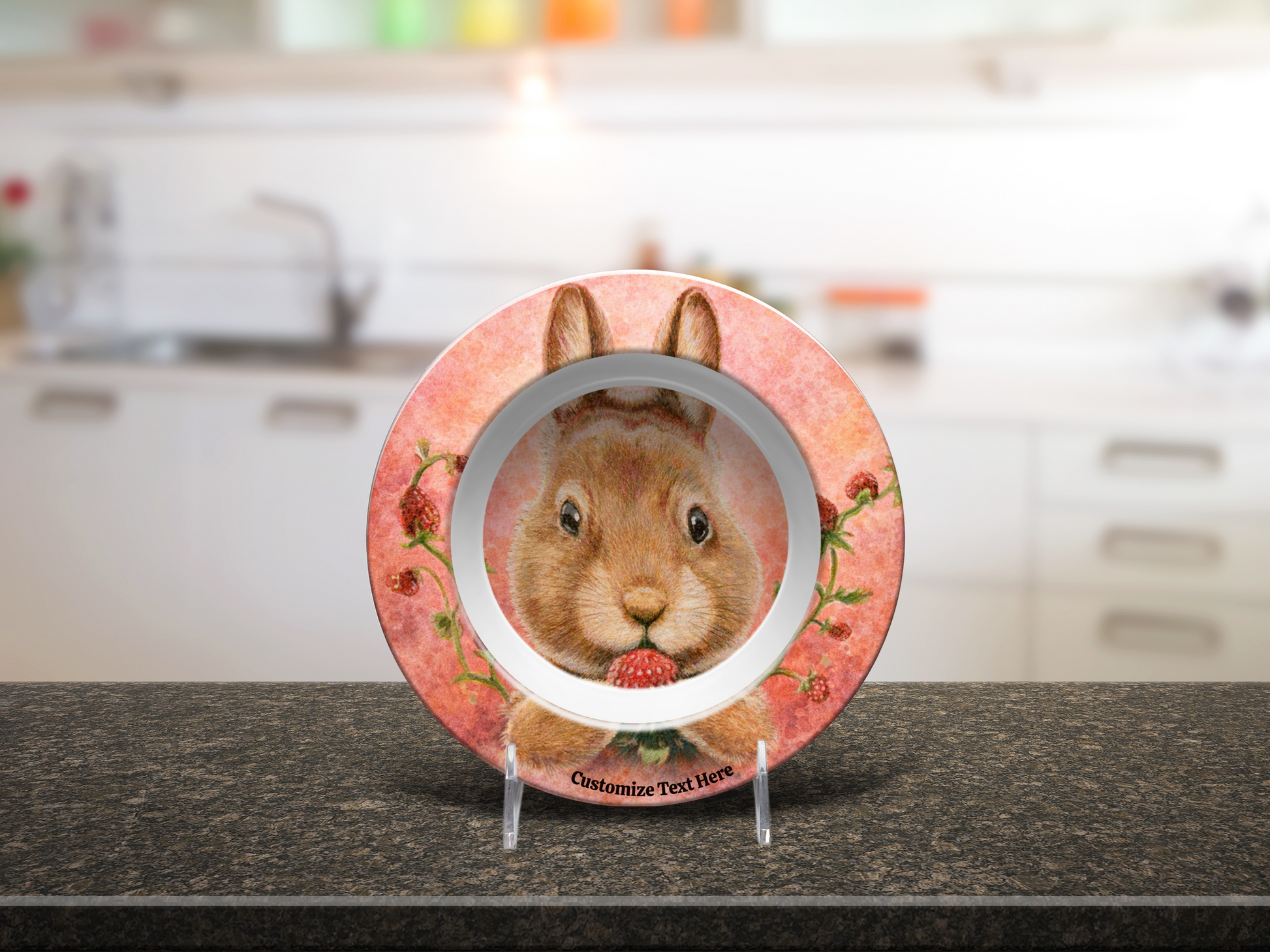 Personalized Kids Plate & Bowl with Bunny & Strawberry – Whimsical Tableware for Children